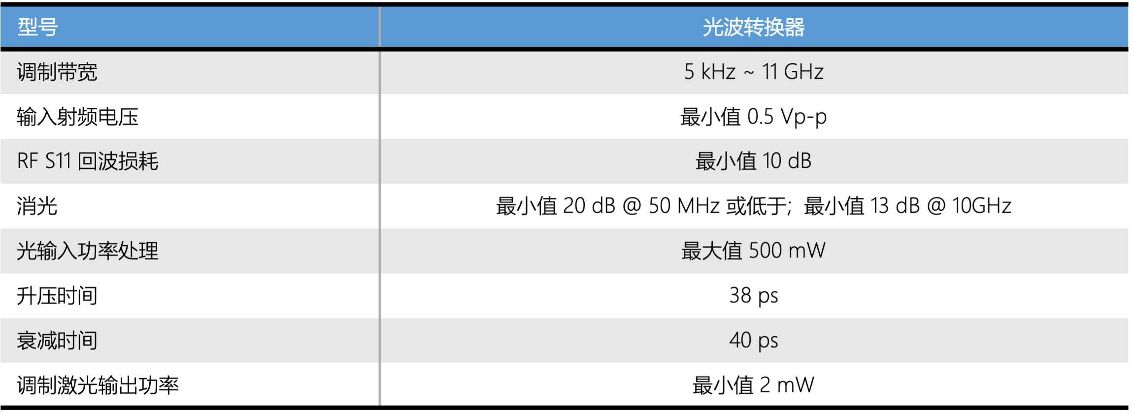 光波转换器是一种高性能集成光波发射器,用于构建数字和模拟光传输系统。该发射器结合了高功率激光器、宽带铌酸锂外部调制器和高速射频驱动器,可用于测试从城域网到长距离通信的所有类型的光网络。 除了标准的10G转换器外,还可提供更高性能的系统,例如波长可调激光器、RZ 调制或 40G带宽。