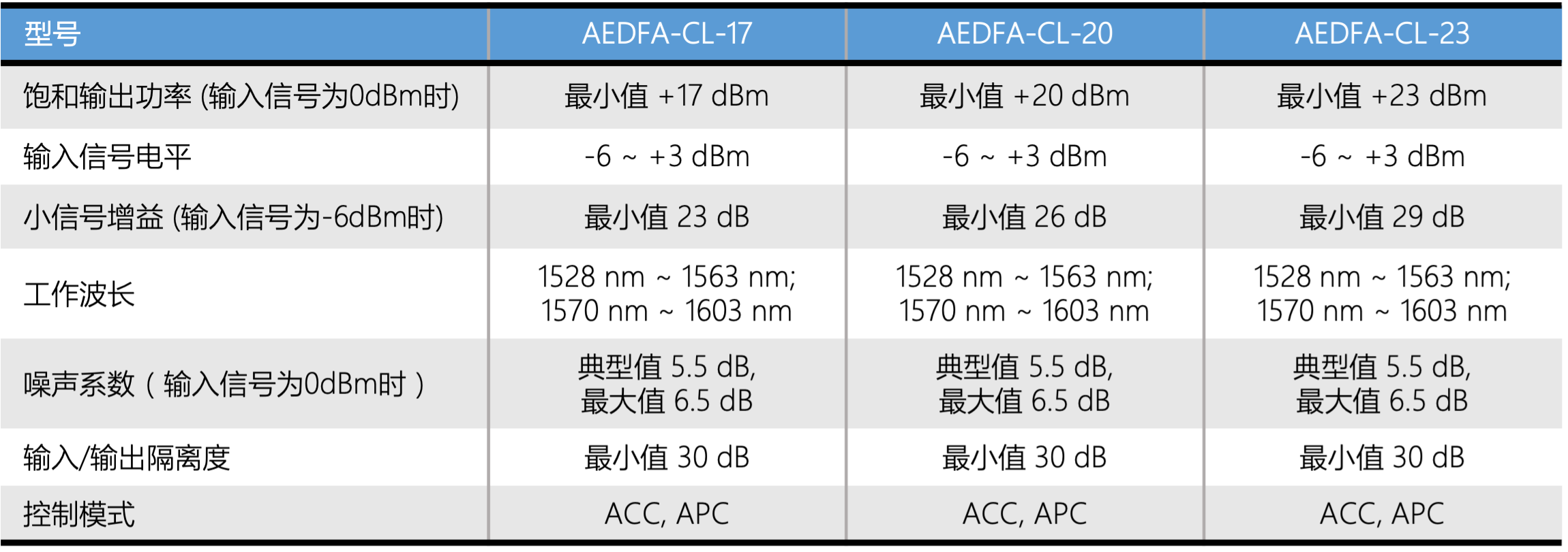 Amonics 的C+L波段EDFA可广泛用于包括自由空间通信、相干光束合并和检测系统在内的各种应用。紧凑型总控钥匙台式或19英寸机架式EDFA集成了用户友好型前面板外壳,带有LCD监视器显示屏、按键开关、电源调节控制旋钮和光学连接器。后面板提供了RS232和以太网计算机接口,能方便实现网管监控。
