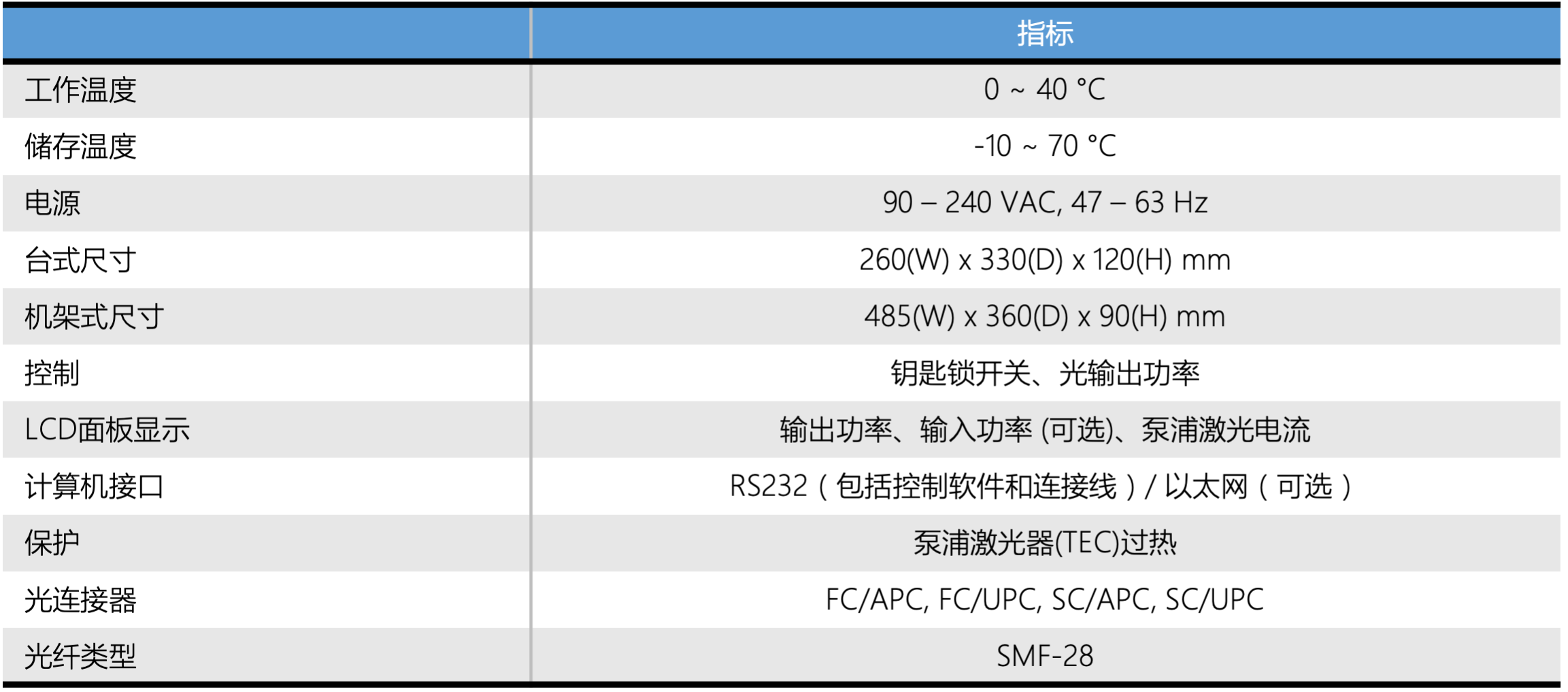 总控钥匙微处理器控制的EDFA设置有解说性警报和状态指示器。集成RS232计算机接口可实现轻松控制、诊断功能和数据采集。 台式或机架式尺寸可供选择。