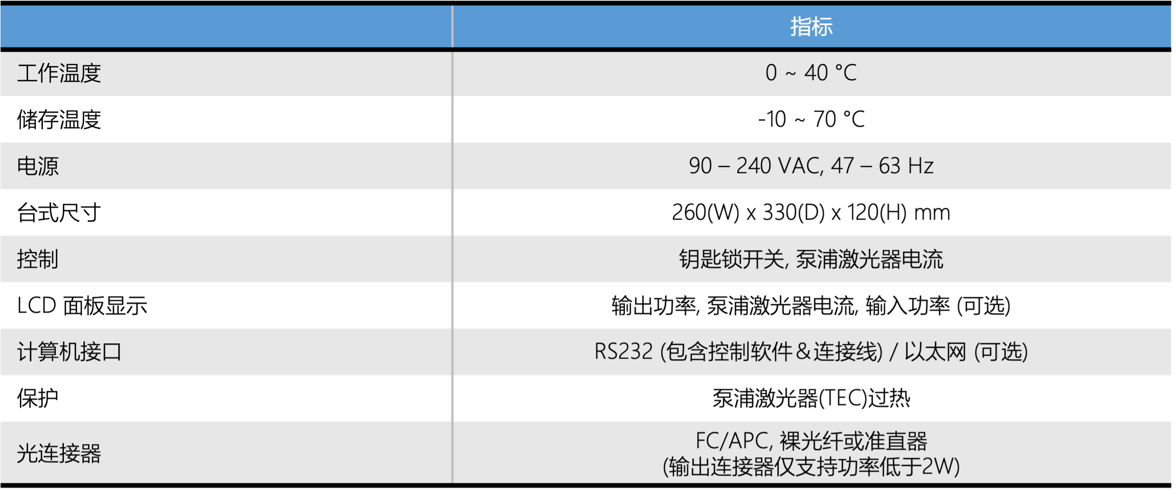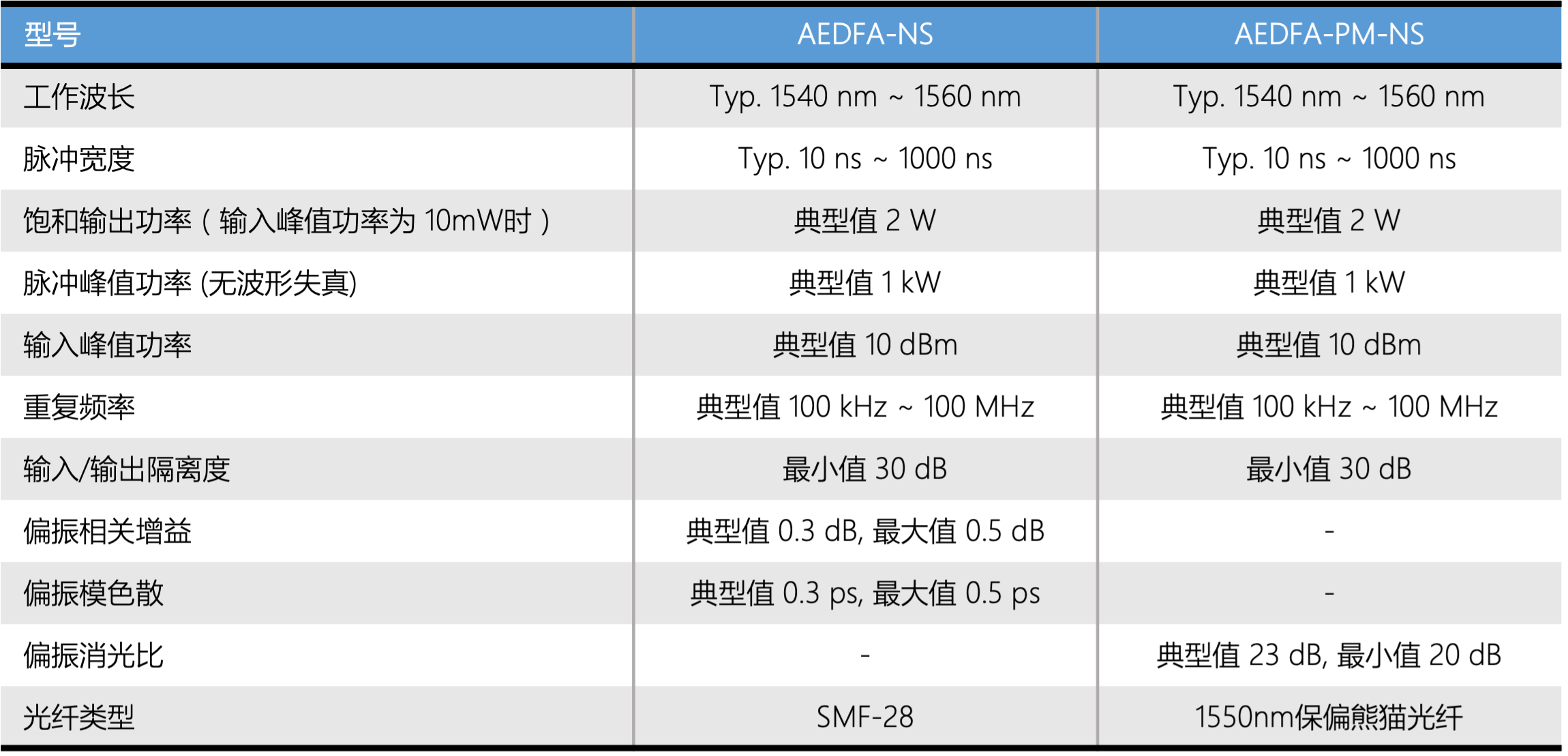 纳秒脉冲EDFA规格参数