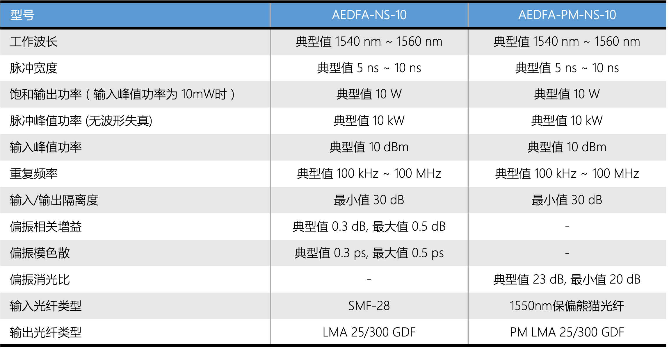 10ns脉冲EDFA规格参数