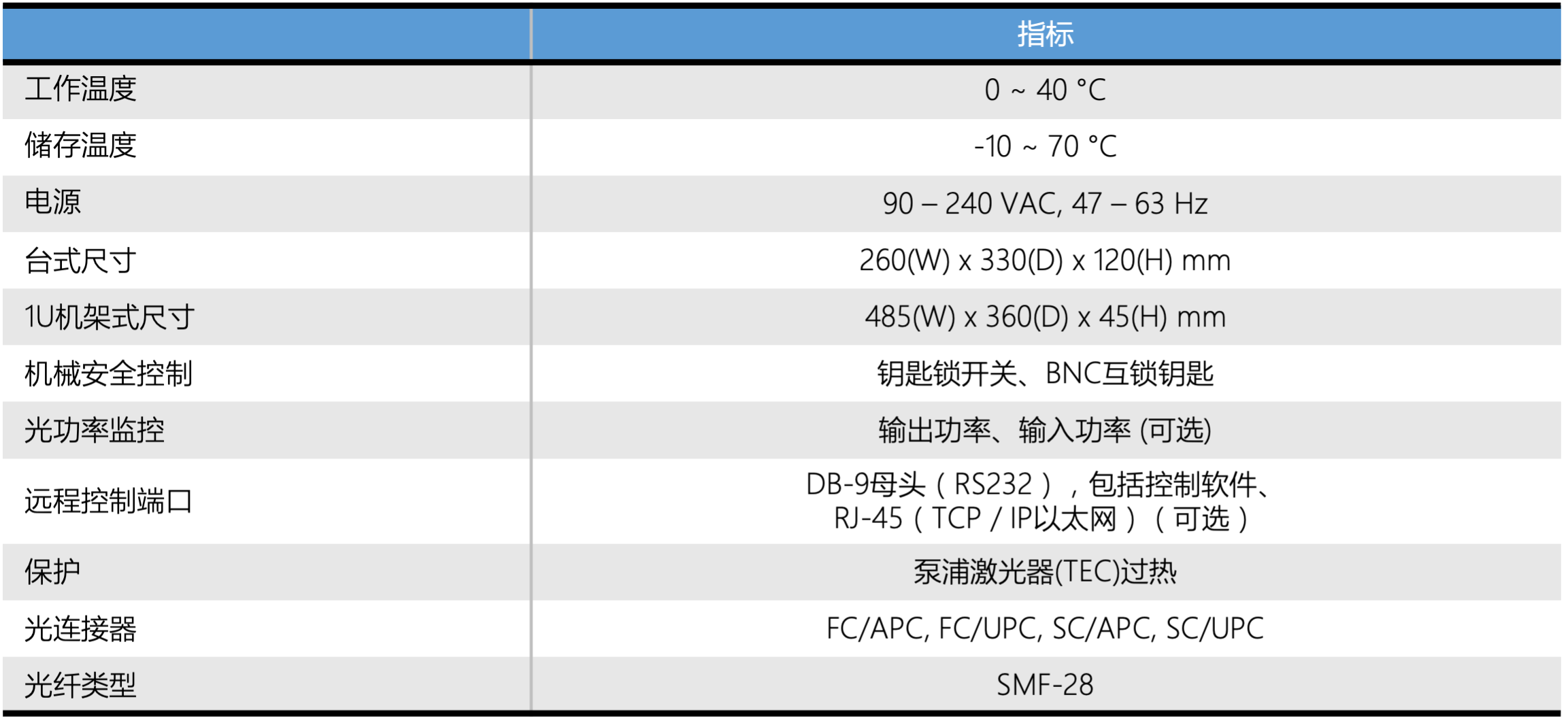 总控钥匙微处理器控制的EDFA设置有解说性警报和状态指示器。 集成RS232计算机接口可实现轻松控制、诊断功能和数据采集。 台式或机架式类型可供选择。
