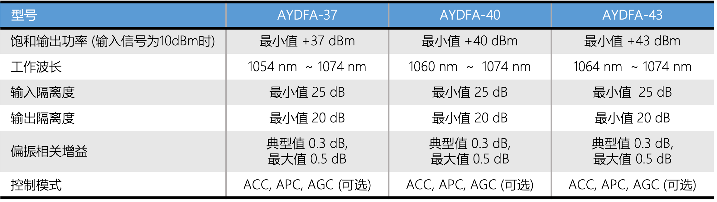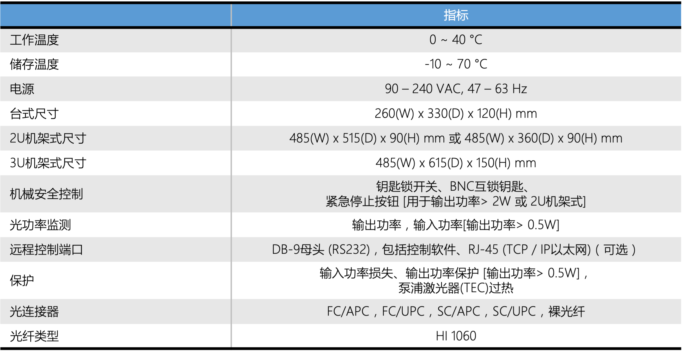 台式高功率YDFA规格参数