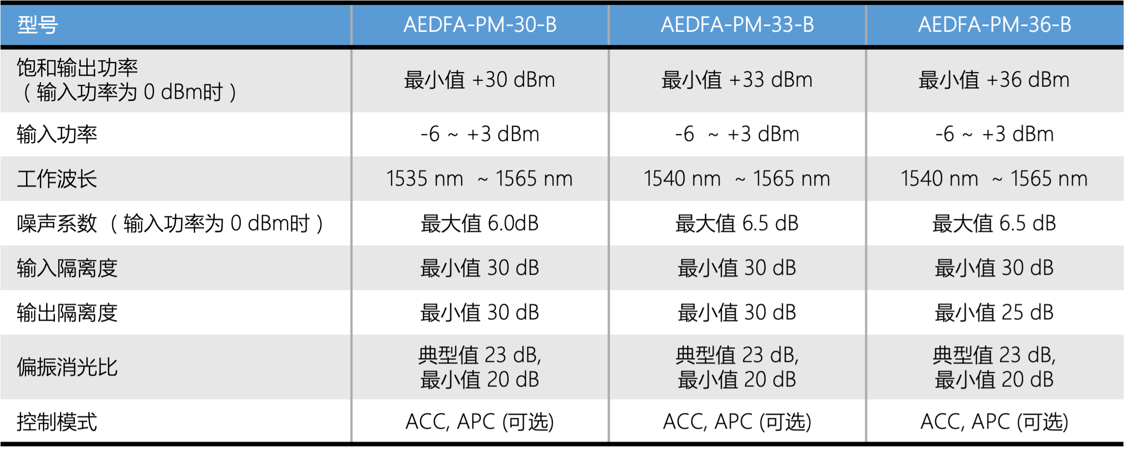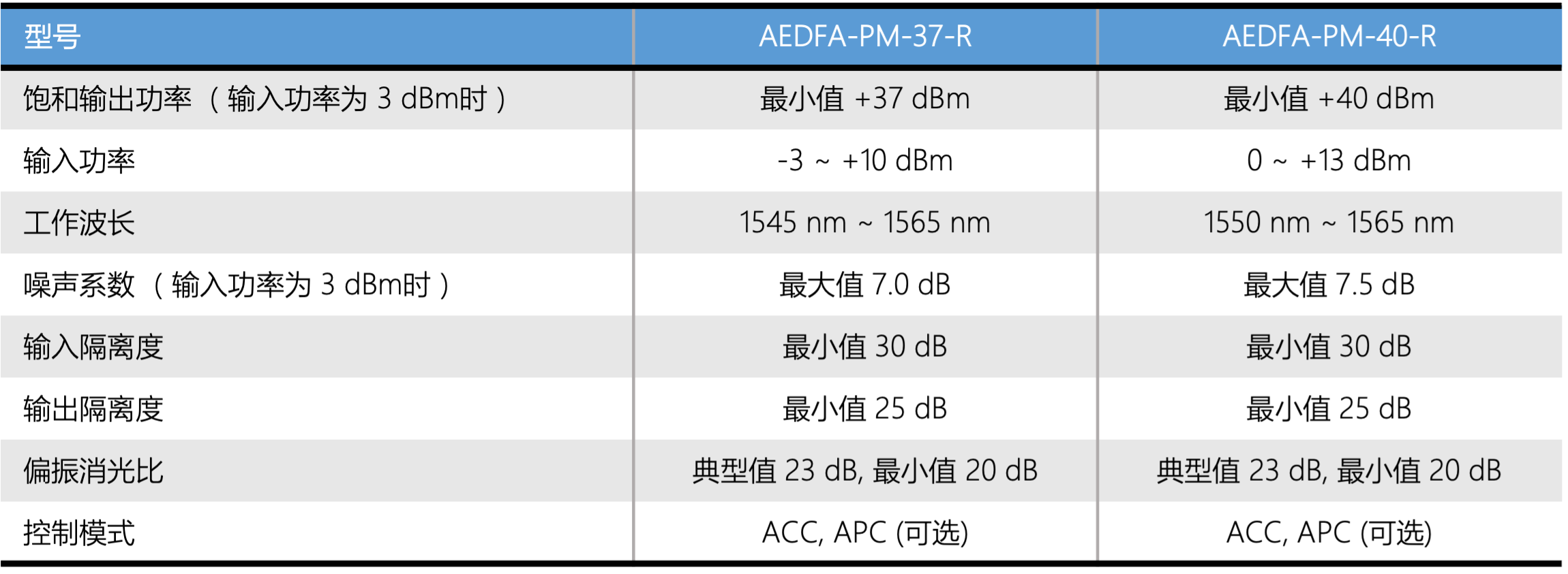 机架式高功率保偏EDFA 规格参数
