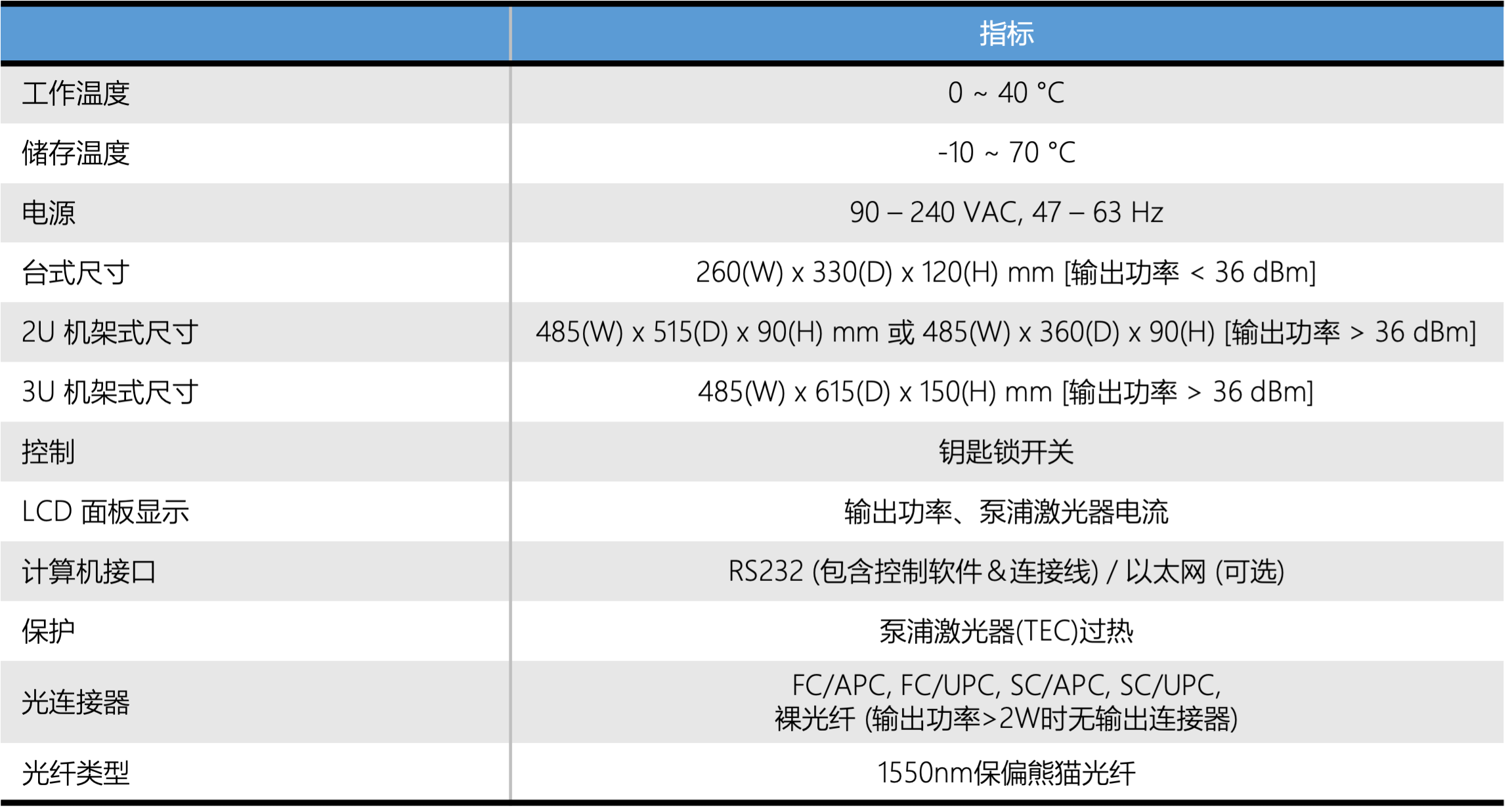 台式高功率保偏EDFA 规格参数