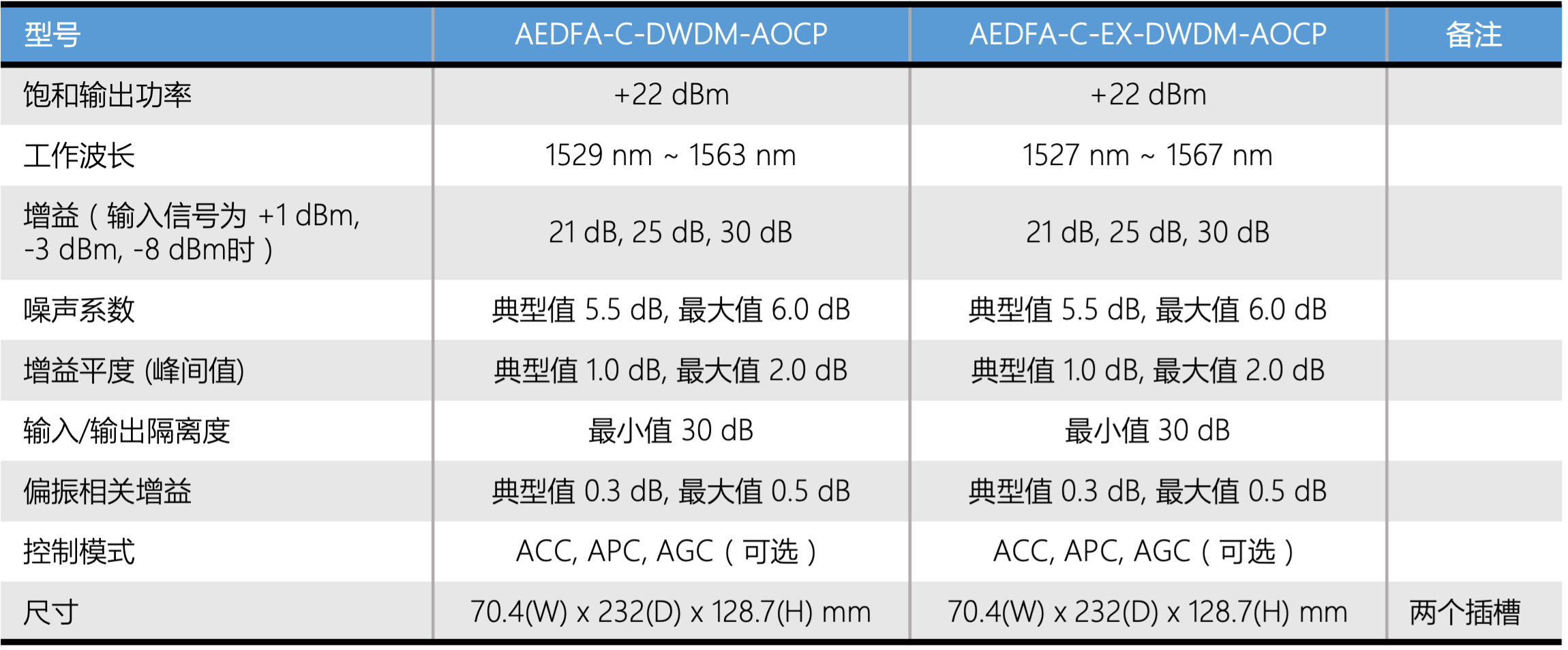 插件模块规格参数: C波段DWDM掺铒光纤放大器