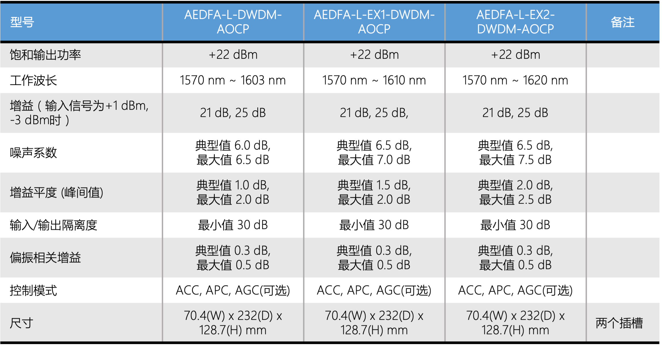 插件模块规格参数: L波段DWDM掺铒光纤放大器