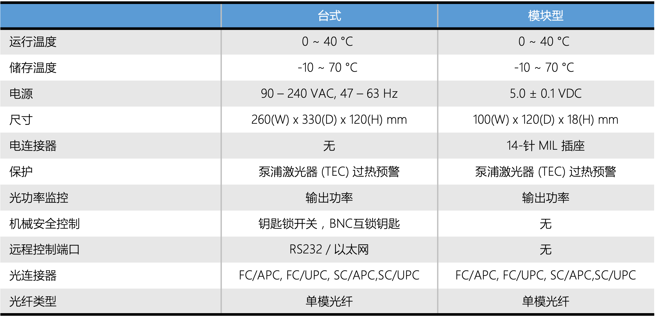 台式版本采用用户友好型前面板,配备、 LCD 显示器、按键开关、电源控制旋钮和光学连接器。 还配备有RS232或以太网计算机接口。