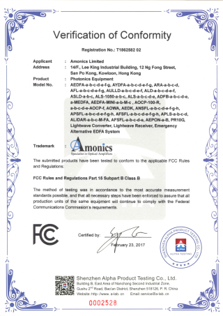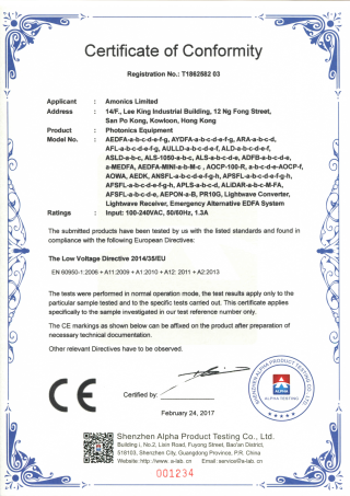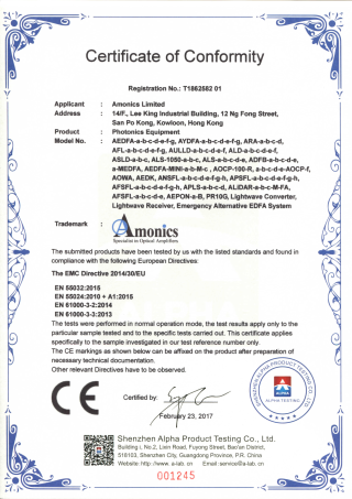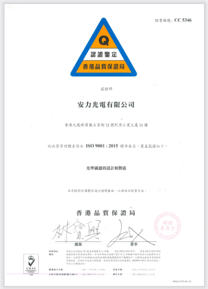 Amonics 安力光电于2011年7月取得了ISO 9001质量认证,认证范围涵盖在香港的办公室和生产场所“光学设备的设计和制造”。 同时我们亦荣幸地宣布,我们所有的产品都是根据HKQAA ISO 9001认证的质量管理体系生产的。
